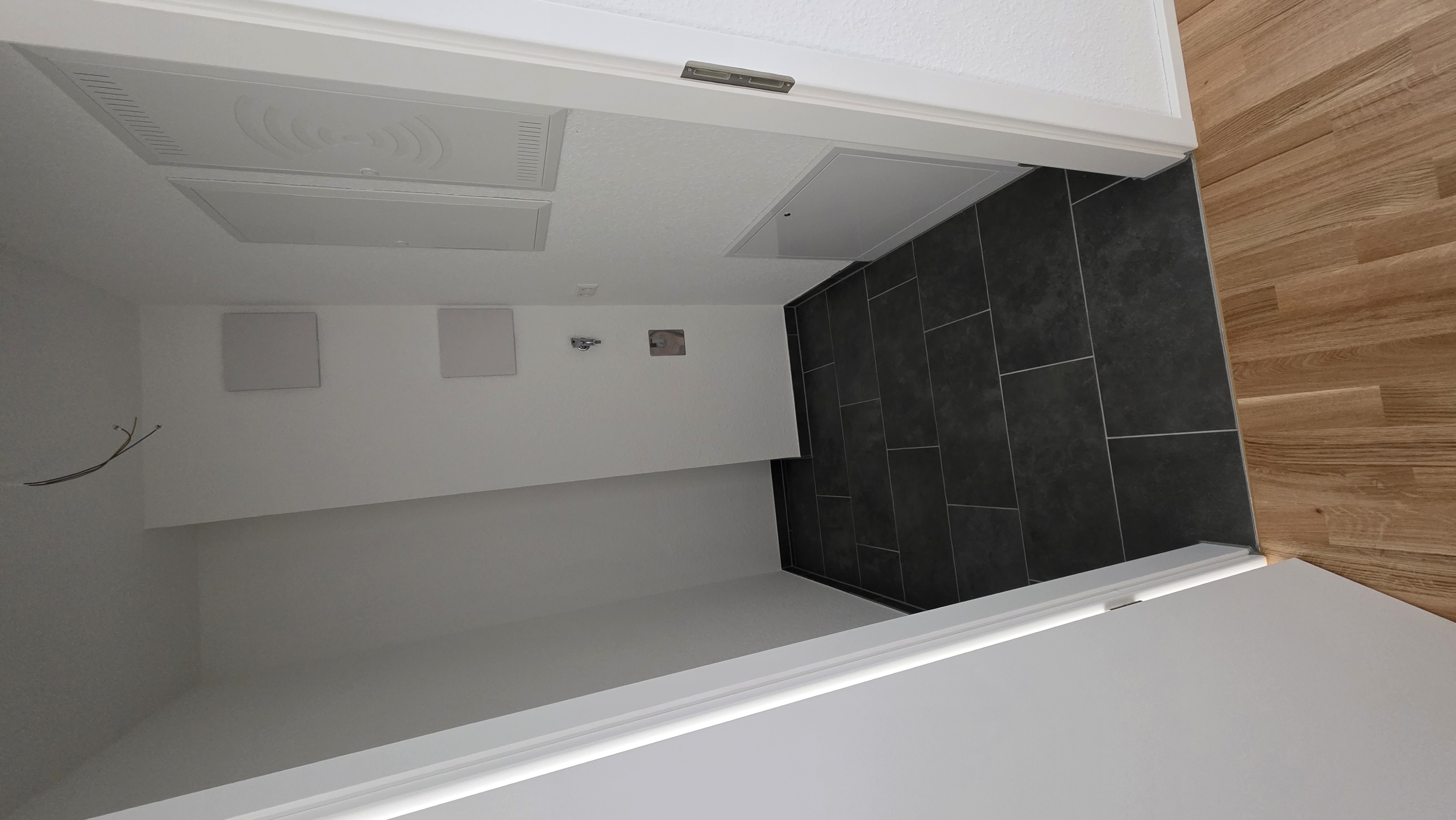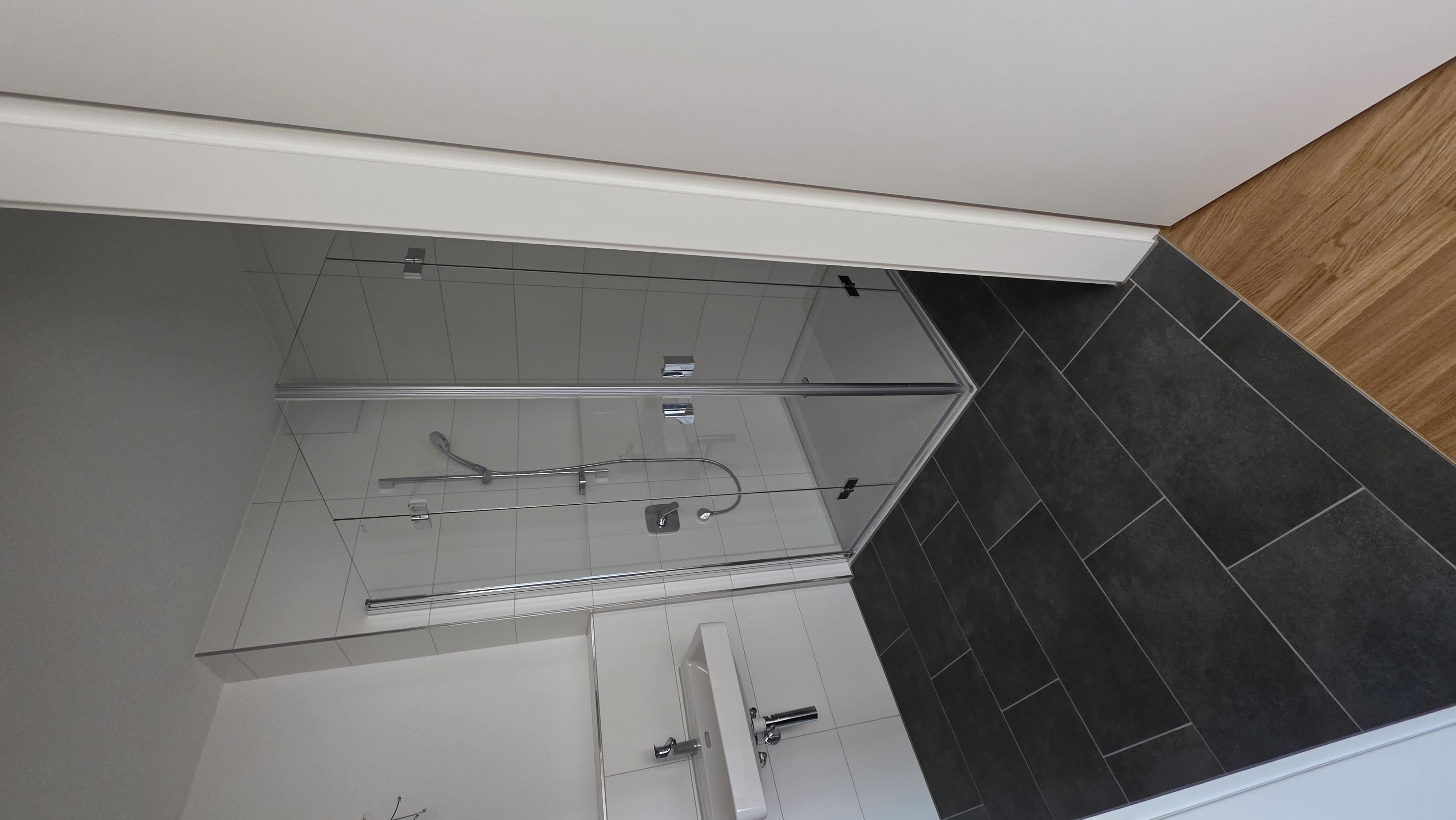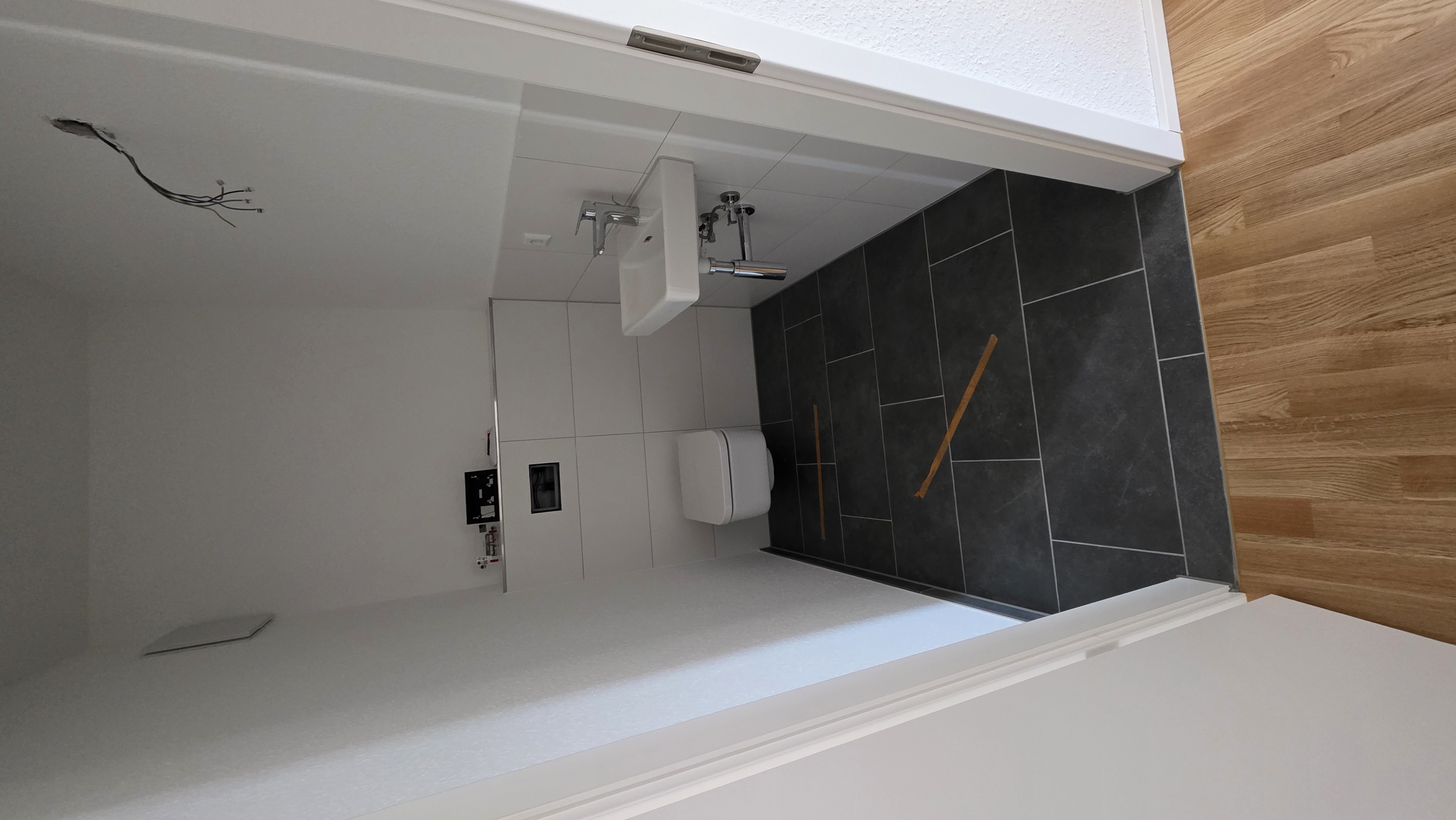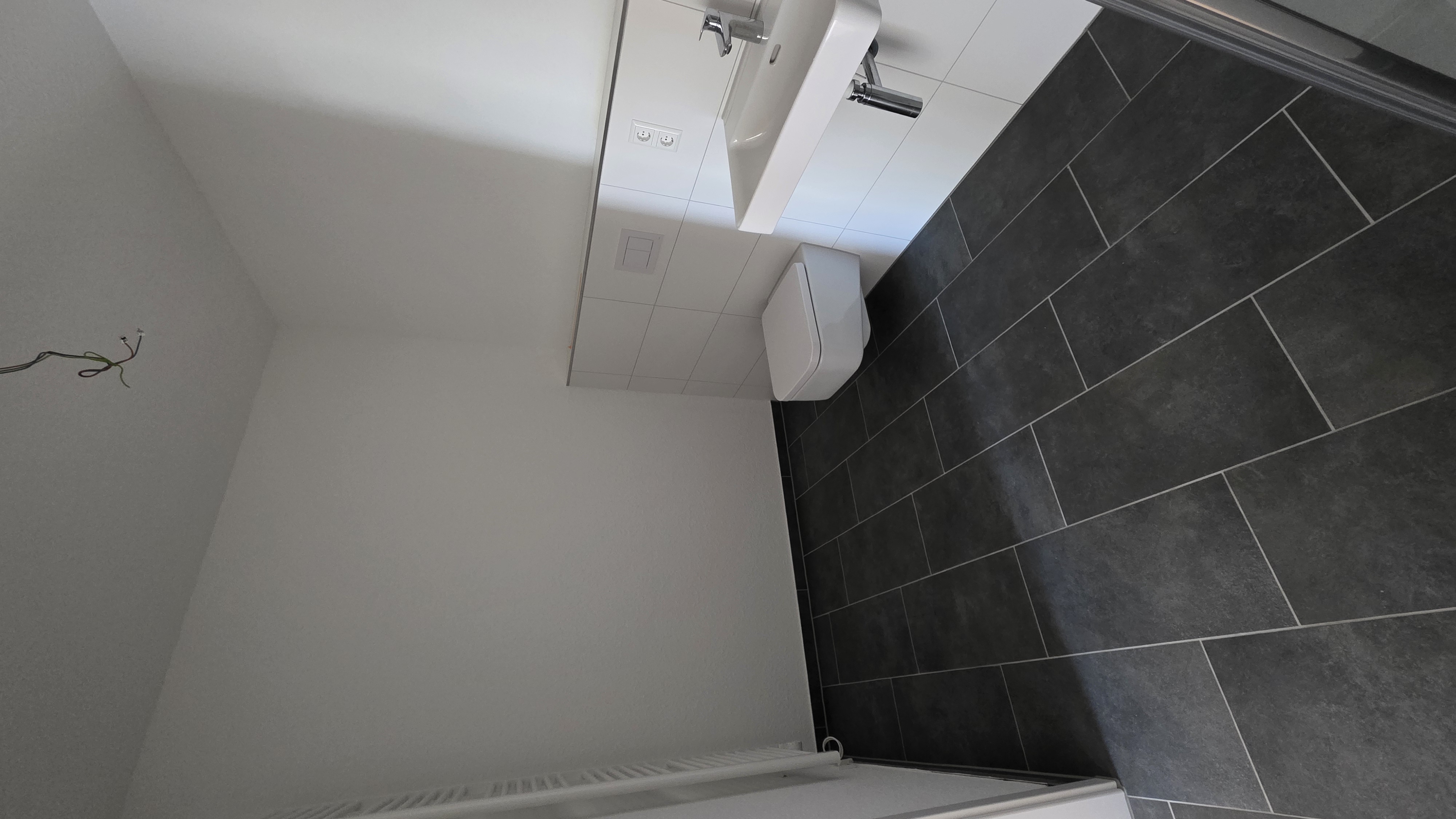 - bodengleiche Dusche und elektrischer Badheizkörper im Bad