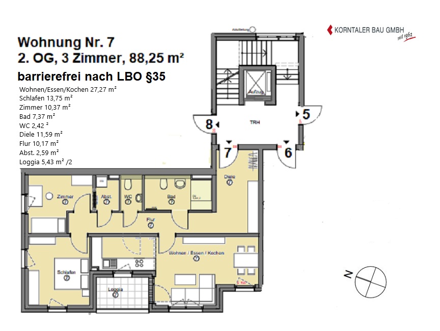 - barrierefreie Erreichbarkeit der Wohnung durch einen Aufzug von der TG bis zur Wohnung